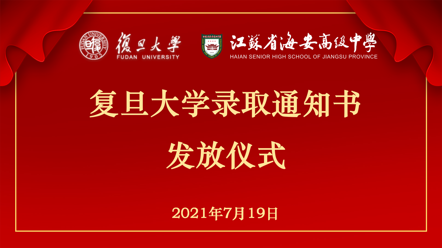 复旦大学领导来海安中学举行2021级新生录取通知书颁发仪式