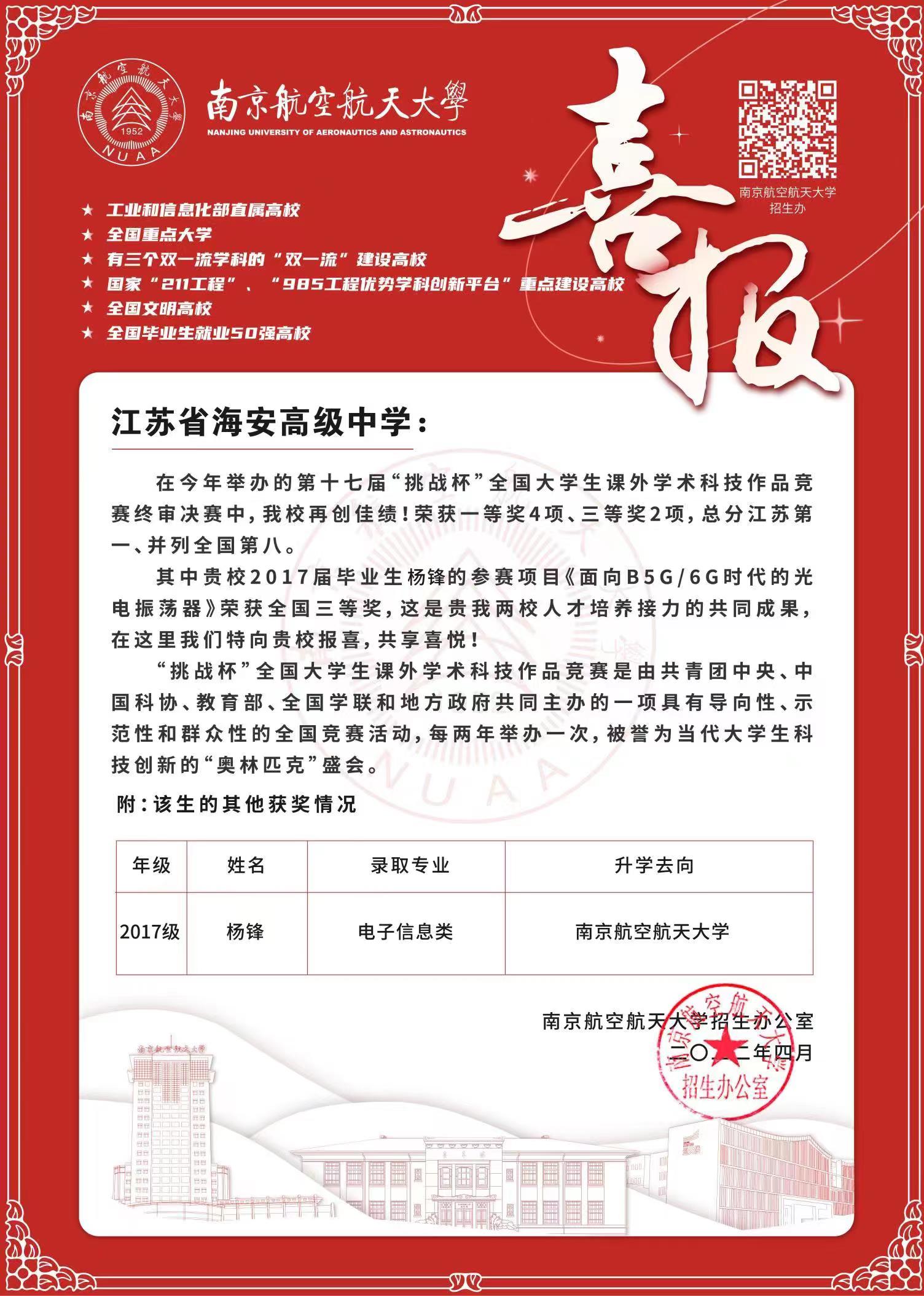 我校校友杨锋在“挑战杯”决赛中取得佳绩